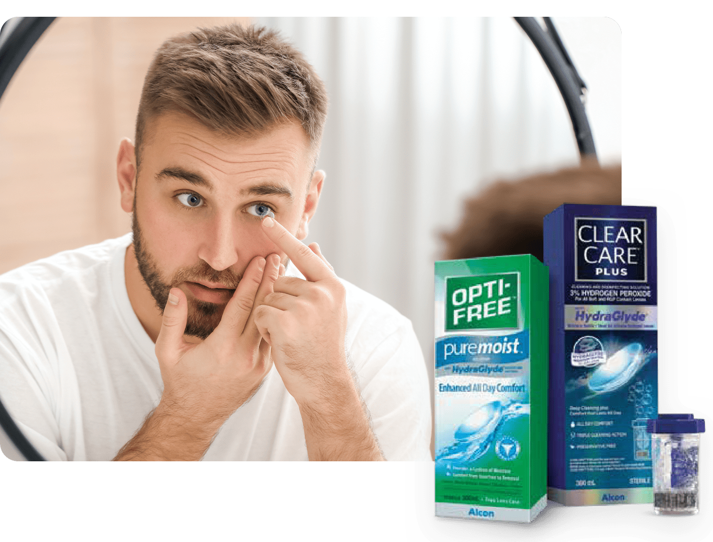 - Multi-Purpose Cleaning and Disinfecting Solutions like Opti-Free® PureMoist® Solution thoroughly cleans and disinfects.