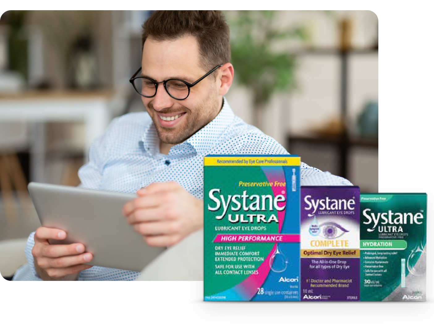 Systane® Preservative Free formulas provide dry eye relief from environmental factors: screen time, air quality, and/or seasonal issues (low humidity and high winds).